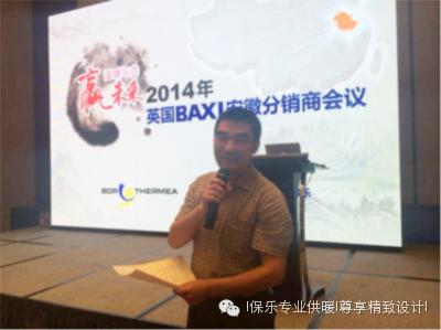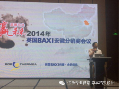 2014年5月23日上午10:18分,赢未来,英国BAXI安徽分销商会议在合肥保乐机电工程有限公司总经理徐明江的主持下正式拉开了序幕!开场后便对2013年至2014年BAXI(八喜)壁挂炉在安徽市场的业绩及发展情况作了报告。合肥保乐机电是与喜德瑞携手多年的安徽一级代理商,在省内有多家分销商和门店,对BAXI(八喜)壁挂炉的销售渠道在安徽地区的布局和拓展功不可没。安徽是华东地区分户采暖发展的一个重要版图,本次分销商会议对凝聚和开拓三四线市场有着重要的意义。在报告中,徐明江对分销商们一年多来的努力与成绩表示了肯定,并号召大家一鼓作气,再创佳绩,凝聚力量,实现2014年发展目标,在安徽供暖市场共襄盛举。